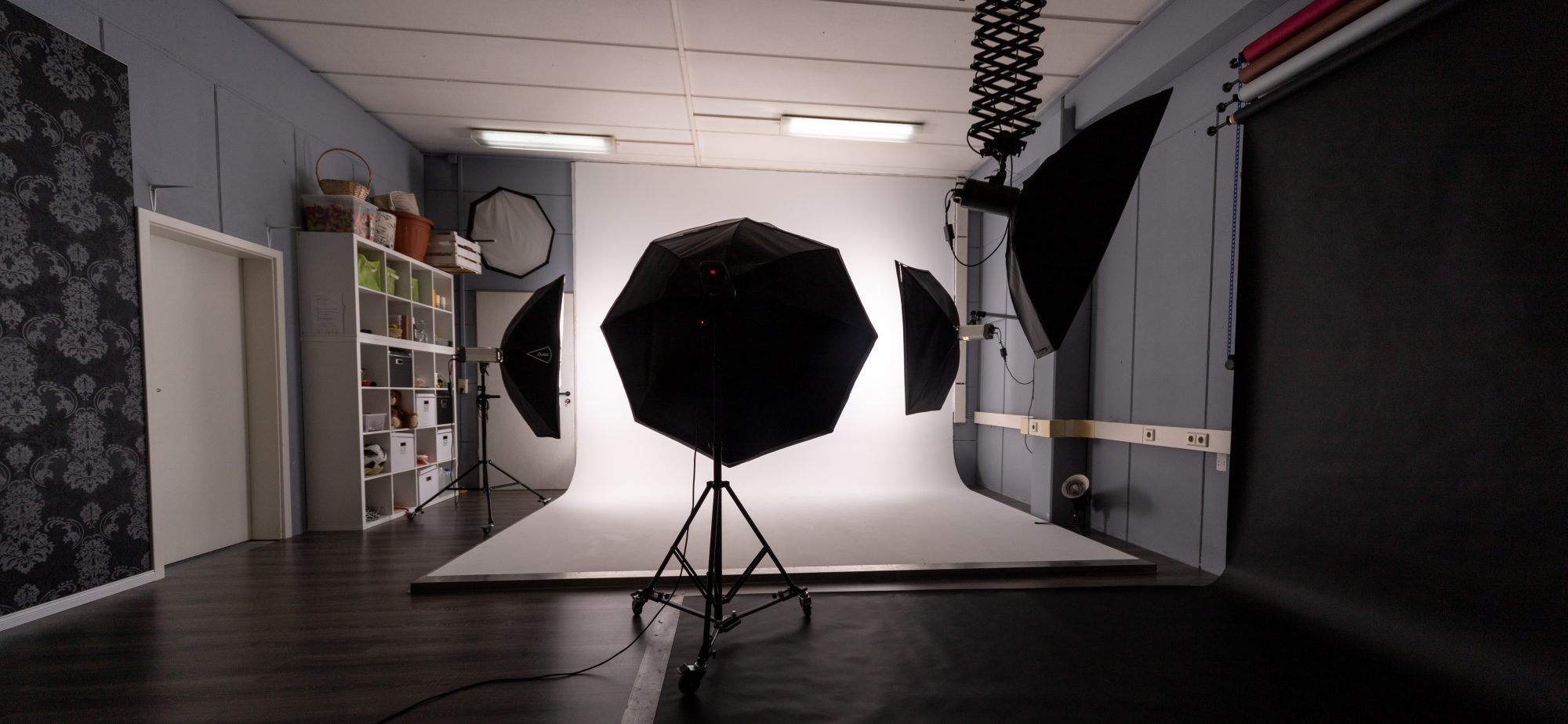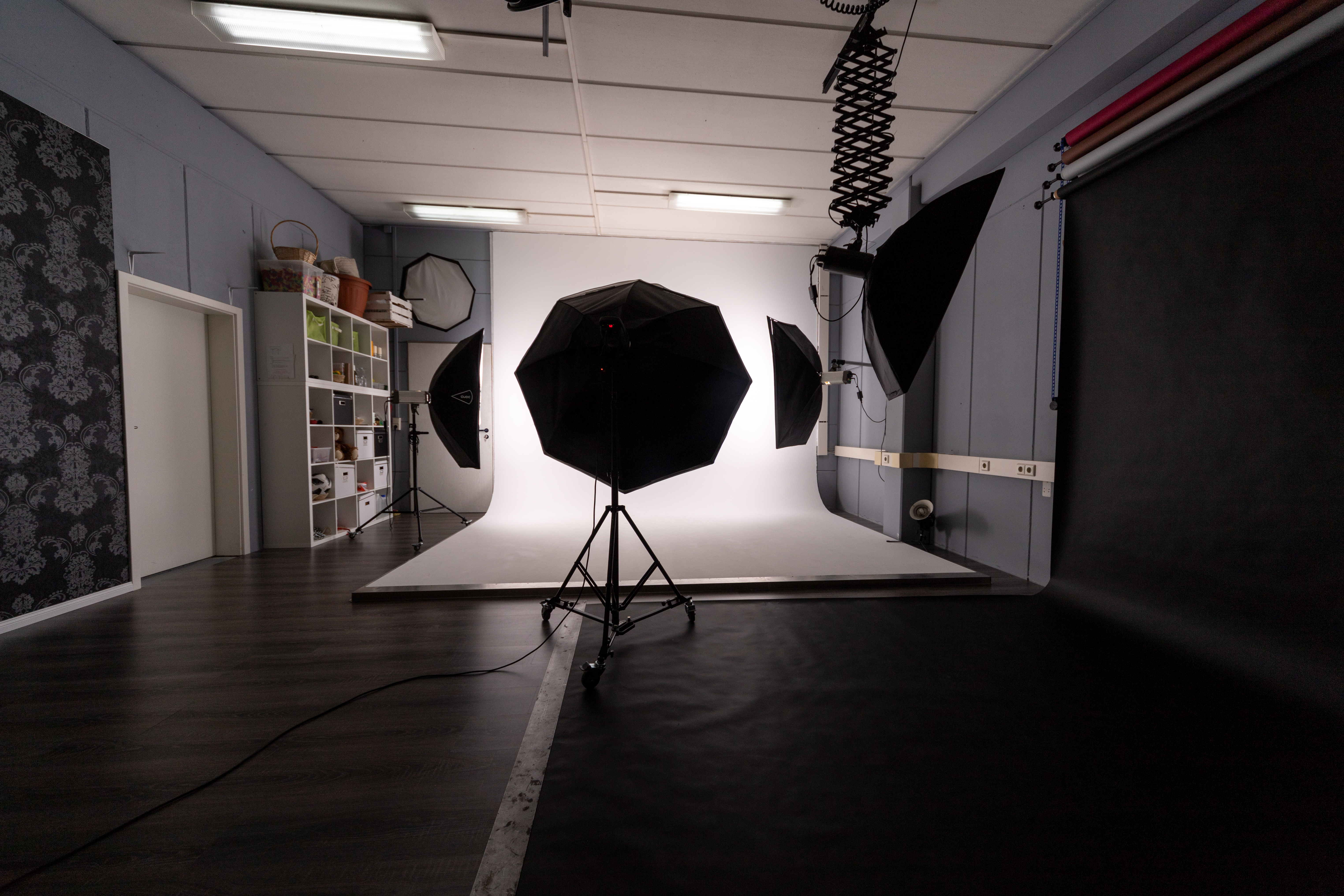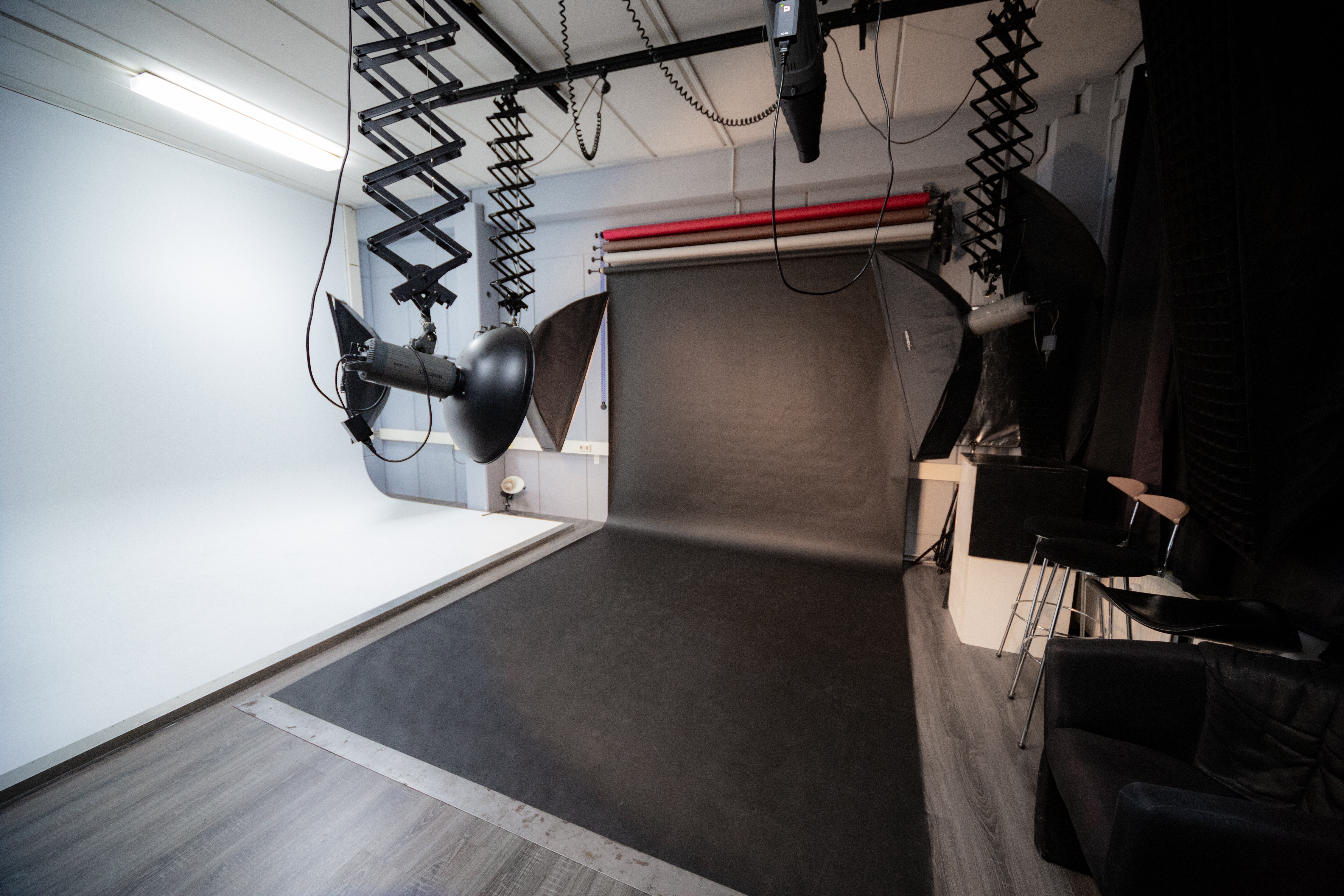 Das Studio ist vorrangig für Fotografie ausgestattet und verfügt hauptsächlich über Blitztechnik. Kleinere Videodrehs – insbesondere Interviews oder Aufnahmen mit sensibler Tonspur – sind selbstverständlich möglich, jedoch stehen nur eingeschränkt kontinuierliche Lichtquellen zur Verfügung. Zudem kann keine absolute Geräuschfreiheit im Gebäude oder im Umfeld garantiert werden, was Tonaufnahmen beeinträchtigen kann. |